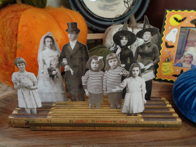 I don't decorate much for Halloween but I saw this on Instagram and loved the idea. They had pictures of their kids but I chose to use some scrapbook images that was a very low key Halloween idea.
